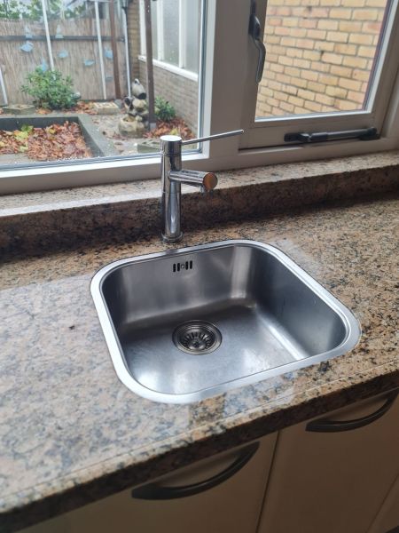 Ładny zlew w komplecie z ładną baterią, bateria ma wysuwaną wylewkę.