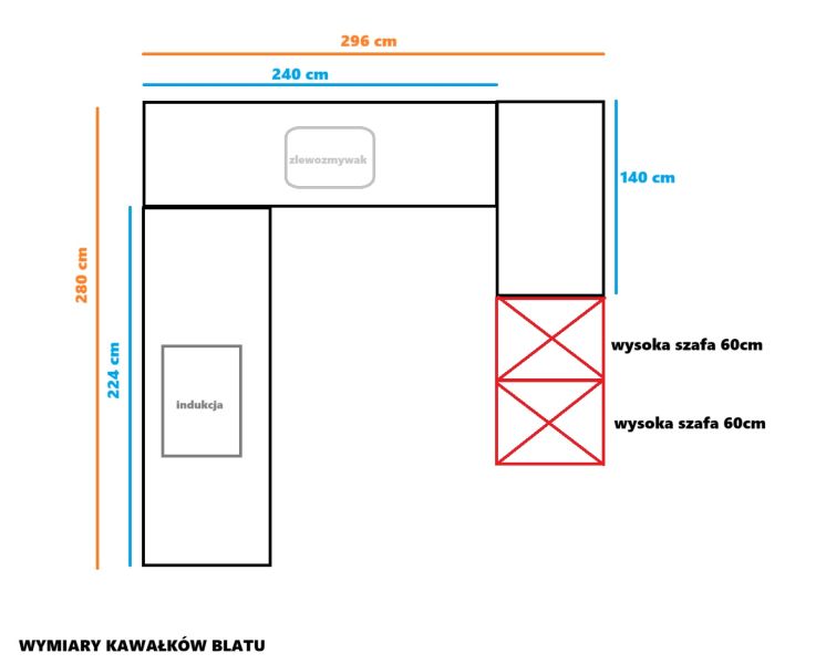 Wysokość górnych szafek: 88cm + listwy pod szafkowe i nad szafkowe
