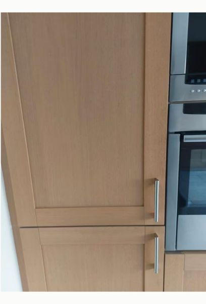 Wysoka zabudowa z poręcznie usytuowaną mikrofalą I piecem (drzwi pieca chowane pod spód!) i dużą lodówką z dużą zamrażarką, ładna płyta indukcyjna. Szafka narożna z wysuwanymi nerkami.