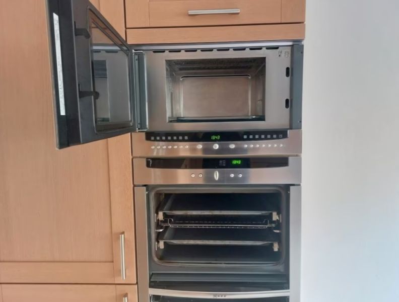 Kuchnia KOMPLETNA we wszystkie elementy i całe wyposażenie AGD. Wszystkie sprzęty AGD w bardzo dobrym stanie, wszystkie marki Neff. Kuchnia bardzo zadbana, ładna, bez uszkodzeń.